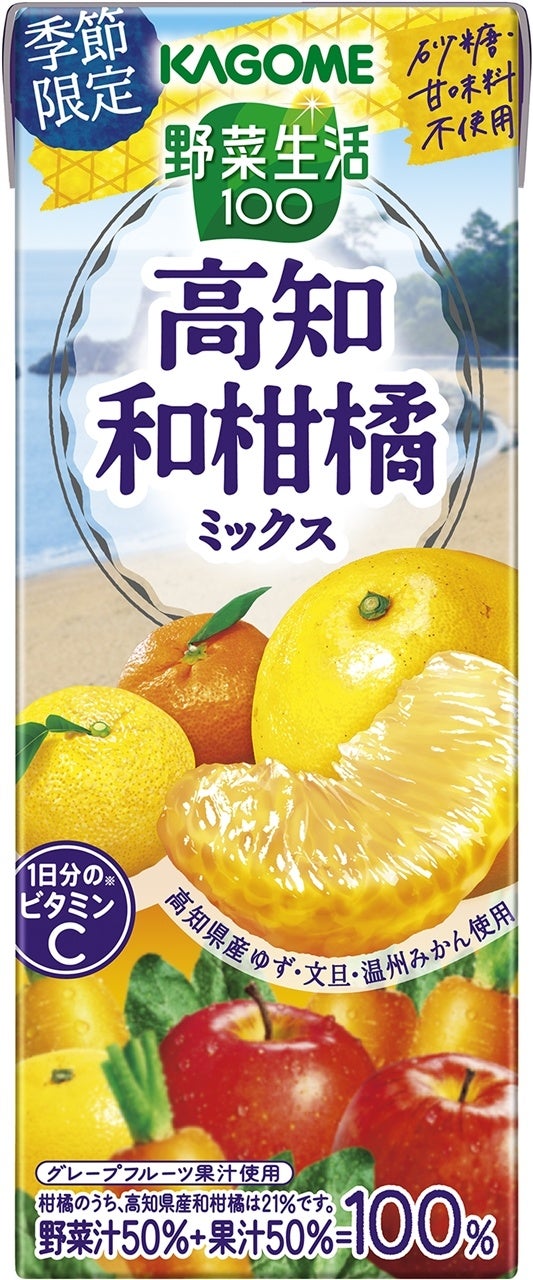 カゴメ株式会社(社長:山口聡、本社:愛知県名古屋市)は、「野菜生活100 高知和柑橘ミックス」を2022年8月23日(火)から11月下旬まで期間限定にて全国で発売いたします。(在庫がなくなり次第、販売終了)