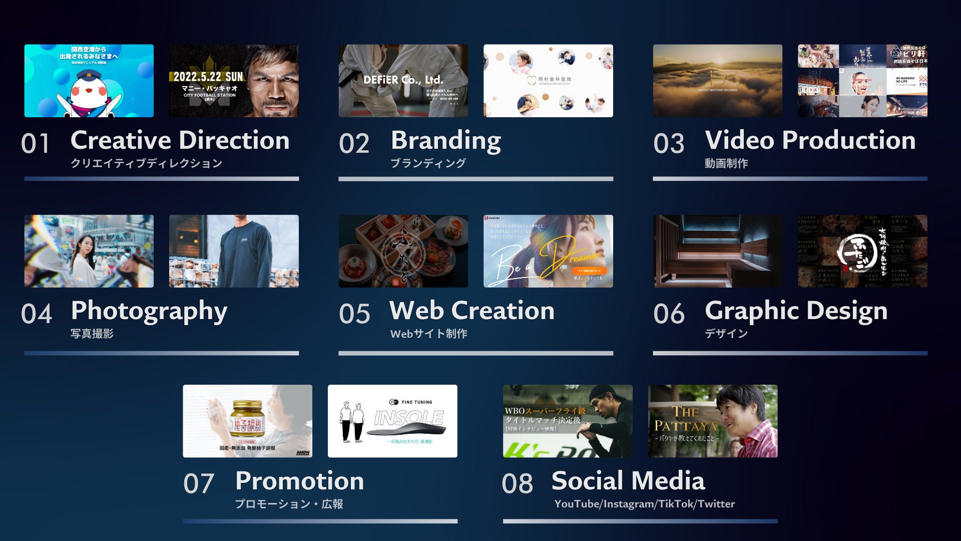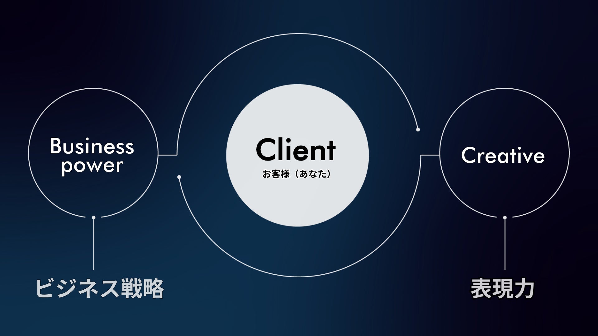 そして、現代のビジネスにおいて必須の「クリエイティブ制作」を完全内製化しているからこそ実現できる、ビジネスに通用した表現力を持っております。