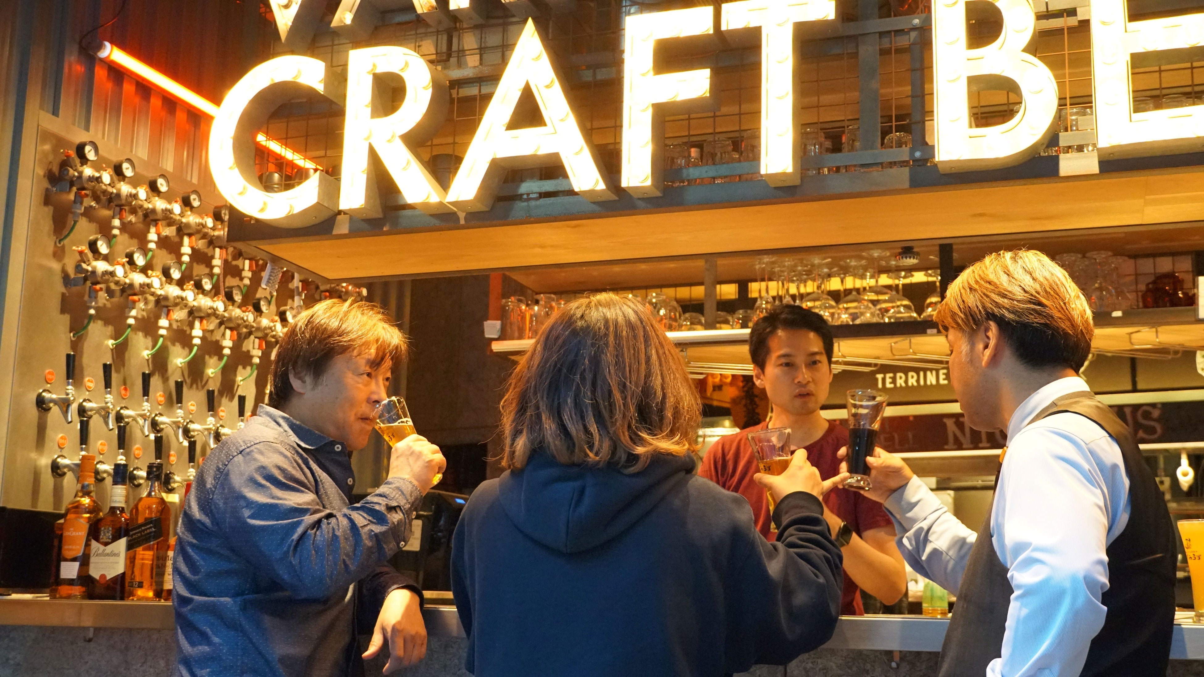 こだわりのビールは10種類ご用意!カウンターでの立ち飲みはもちろん、ご宴会や二次会にもオススメです。