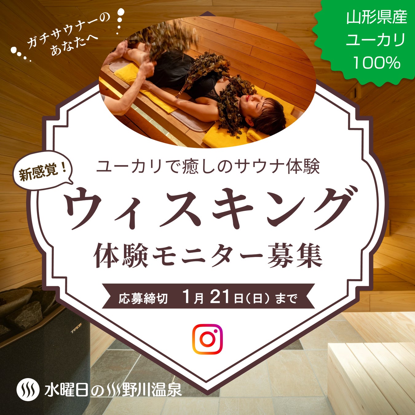 体験希望者は、水曜日の小野川温泉 公式インスタグラムの応募フォームより応募し、抽選により決定する。