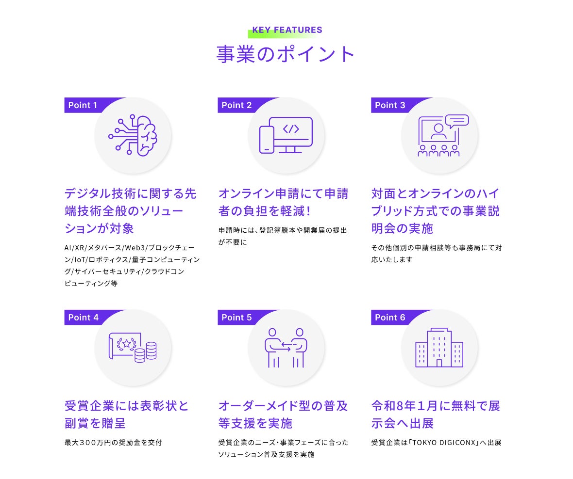 (1)AI/XR/メタバース等のデジタル技術に関する先端技術を活用したソリューション・コンテンツ等(以下、「ソリューション等」という。)(※1)