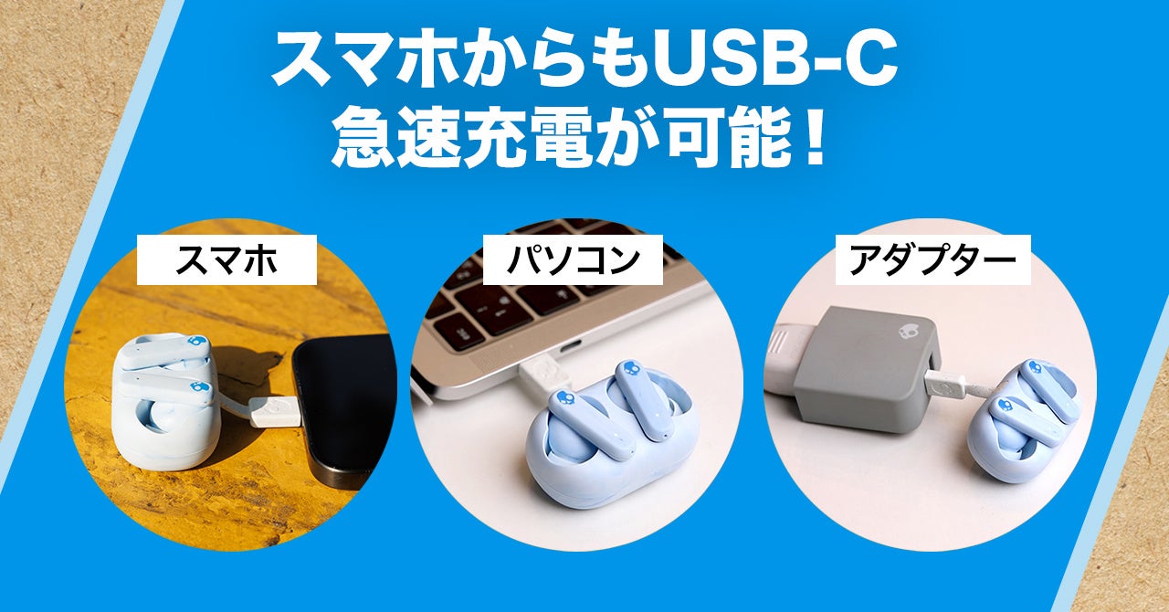 ・バッテリー非搭載!スマホからUSB-C急速充電!
