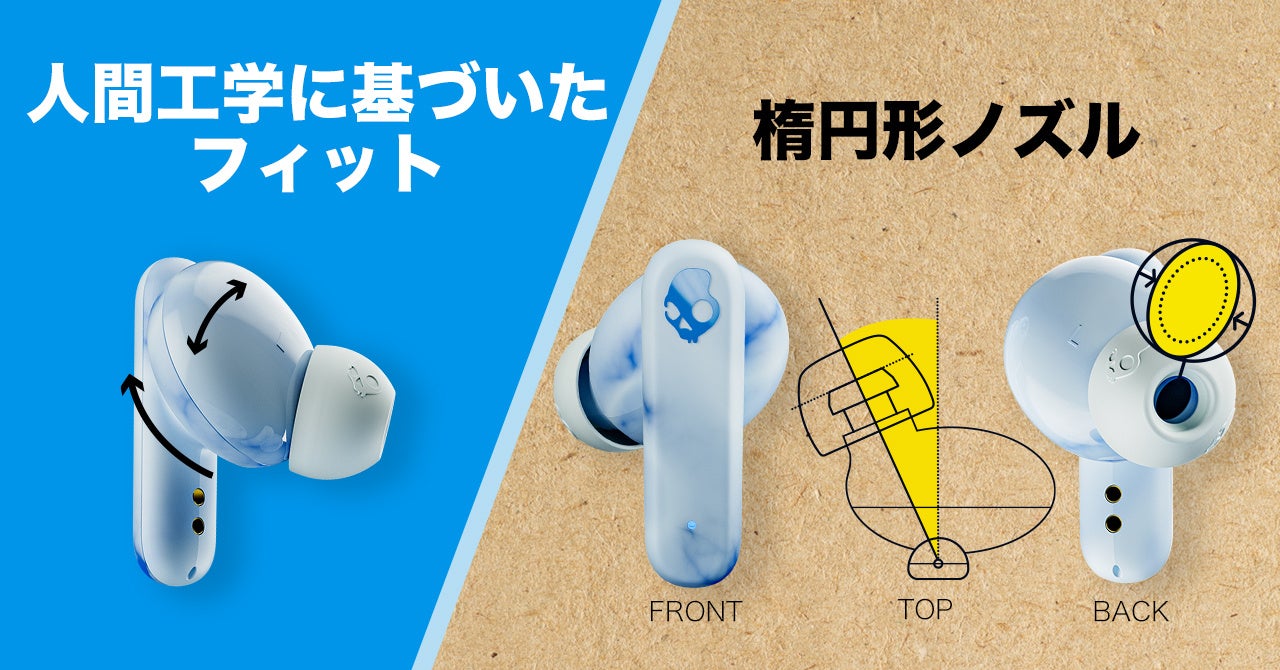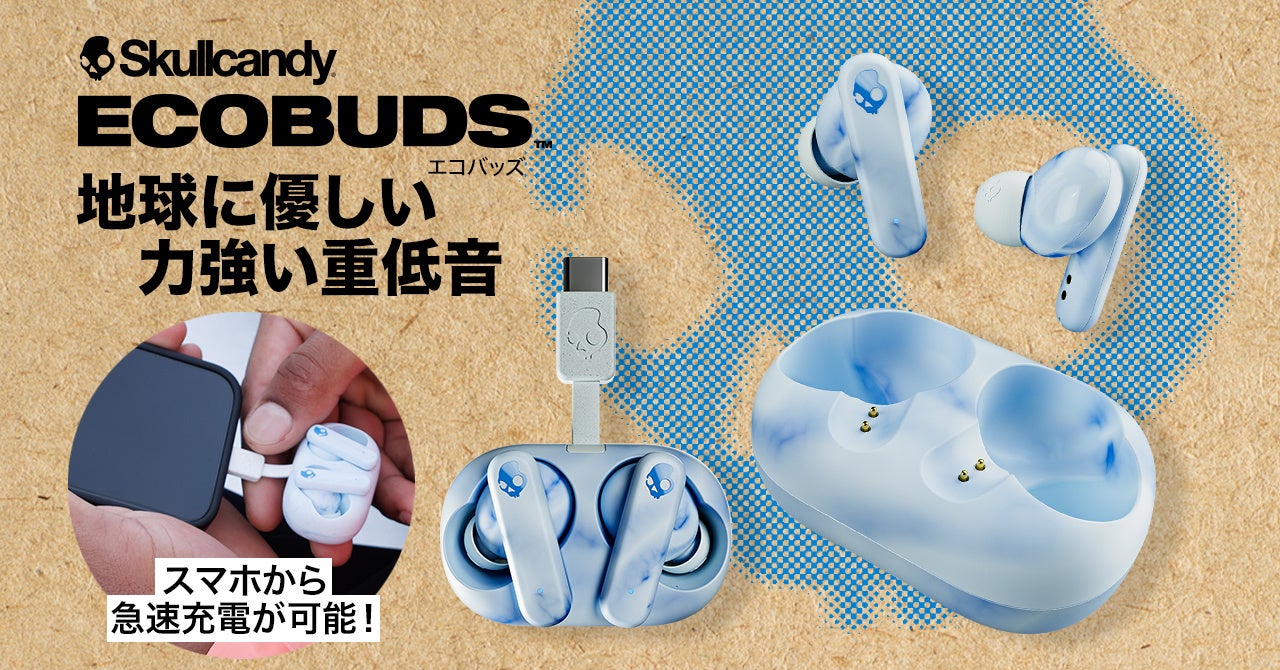 【Skullcandy】バッテリー非搭載ケース!スマホからもUSB-C急速充電が可能!地球に優しい力強い重低音「EcoBuds」2024年最新完全ワイヤレスイヤホン