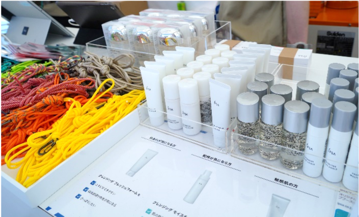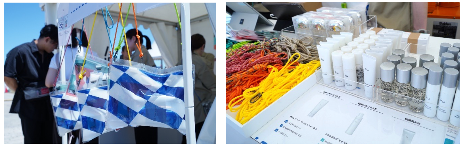 開催期間中は、日本発のジッパーバッグブランド「Pake®」とコラボしたポーチ付きの特別キット2種類を限定販売しました。横浜の海をイメージしたデザインの「ミニアクアキット」、海に染まるオレンジの太陽と自然をイメージしたグリーンの配色にうるおいをイメージしたデザインが特徴の「スキンケアトライアルキット」は12種類の紐から選ぶことができ、自分だけのポーチを楽しんでいただきました。
