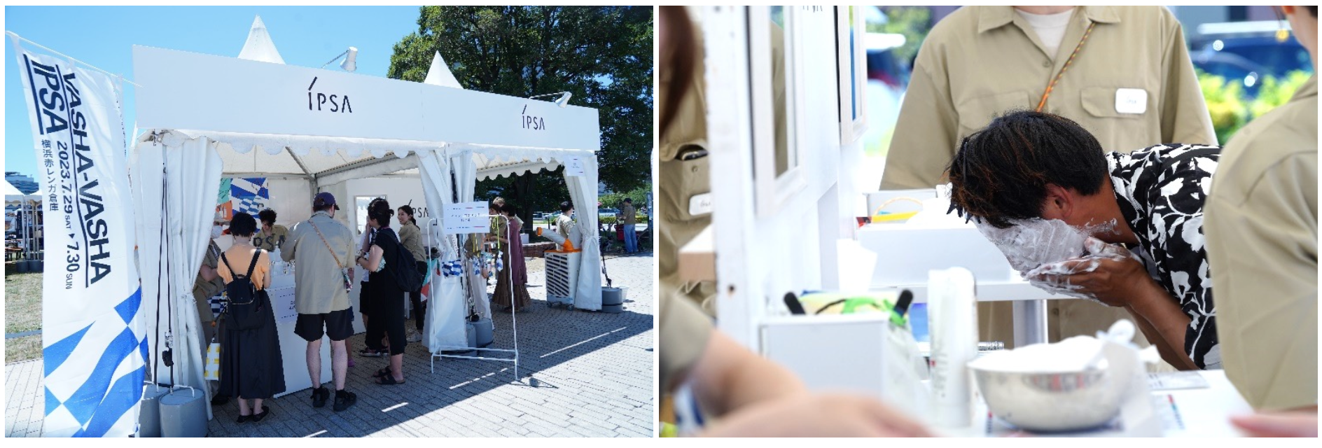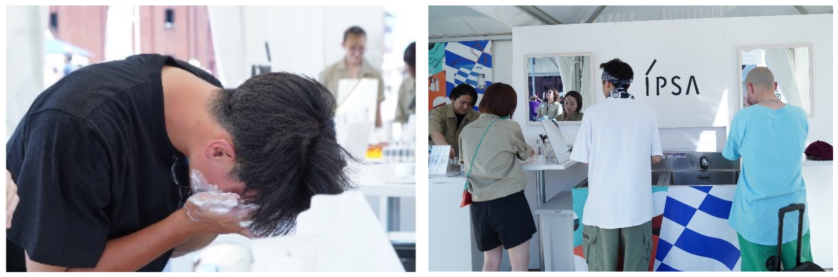 本イベントにてイプサは、「VASHA-VASHA IPSA-バシャバシャ洗顔、次はどこに行く?-」をテーマに、来場者や競技終わりの選手に向け、汗をさっぱり流し保湿ケアまでできる洗顔ブースや、日やけ止めの塗り直しができるブースを展開。イプサの肌カウンセリングのスペシャリスト“レシピスト” が、来場者の肌悩みに合わせておすすめの洗顔料や洗顔方法などをレクチャーし、開催2日間で約500人以上の来場者がイプサの洗顔料や日やけ止めを体験しました。