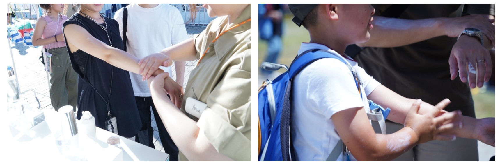 「プロテクターテスターブース」では、肌質や使用シーンに合わせて選べる4種の日やけ止めをご紹介。イプサのスタッフによる塗り方レクチャーも実施しました。何気なく日やけ止めを塗る方がいる中で、丁寧なコミュニケーションにより日やけ止めの塗り方を再度見つめ直す方が多く、賑わいを見せる出展となりました。