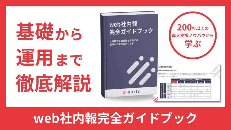 社内コミュニケーション活性化ツール「ourly」を提供するourly株式会社(本社:東京都品川区、代表取締役社長:坂本良介、以下当社)は、web社内報の基礎知識から具体的な運用ノウハウ、成功事例をまとめた『web社内報完全ガイドブック』をホワイトペーパーとして無償公開します。