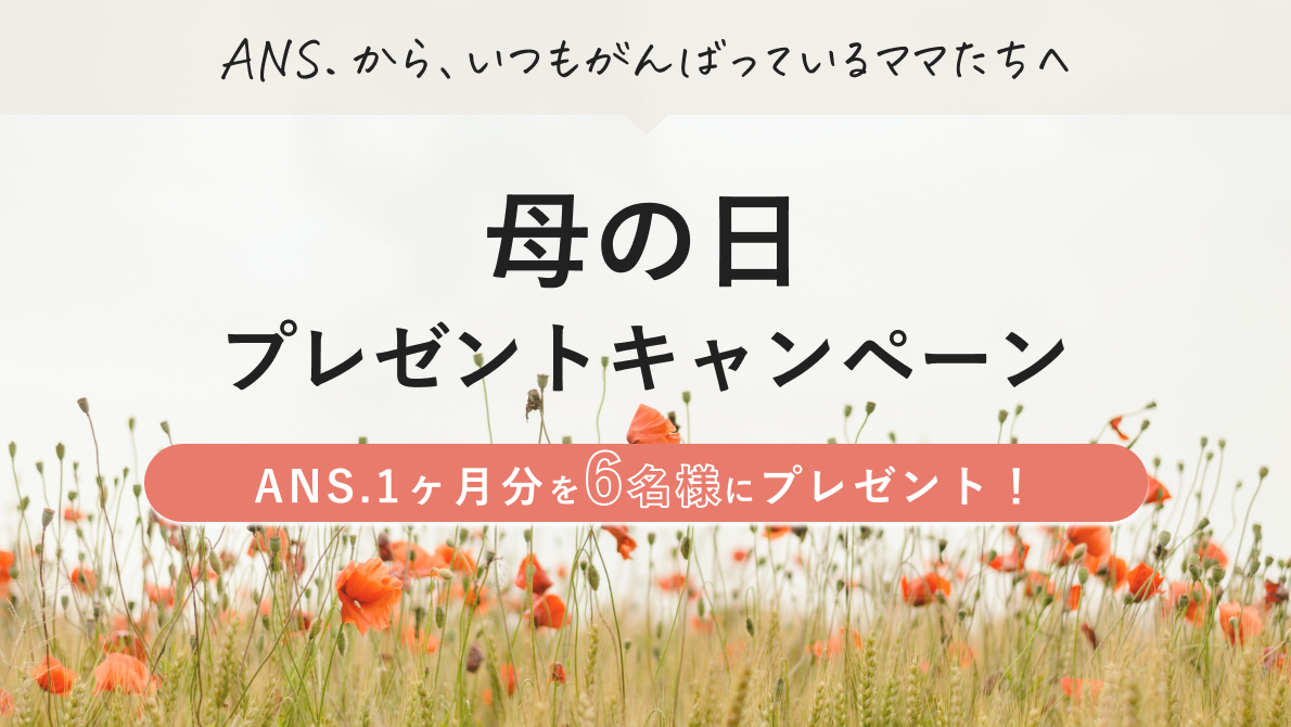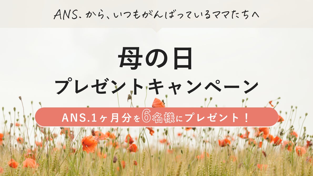 いつも頑張っているママたちのために、『オンライン美肌治療 ANS.』の1ヶ月・無料利用権利を抽選で6名様にプレゼント致します。子育てをするママ、ご自身のお母さまに贈りたい方など、どなたでもご応募が可能です。