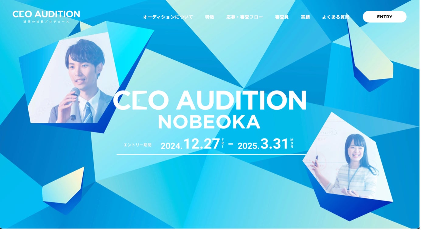 「CEO AUDITION」は、参加者のビジネスアイディアや経験ではなく、延岡市に対する想いや社長として自らの道を切り拓いていくことへの情熱と、何があっても諦めないという意志を重視した審査を行うオーディション形式のプロジェクトです。
