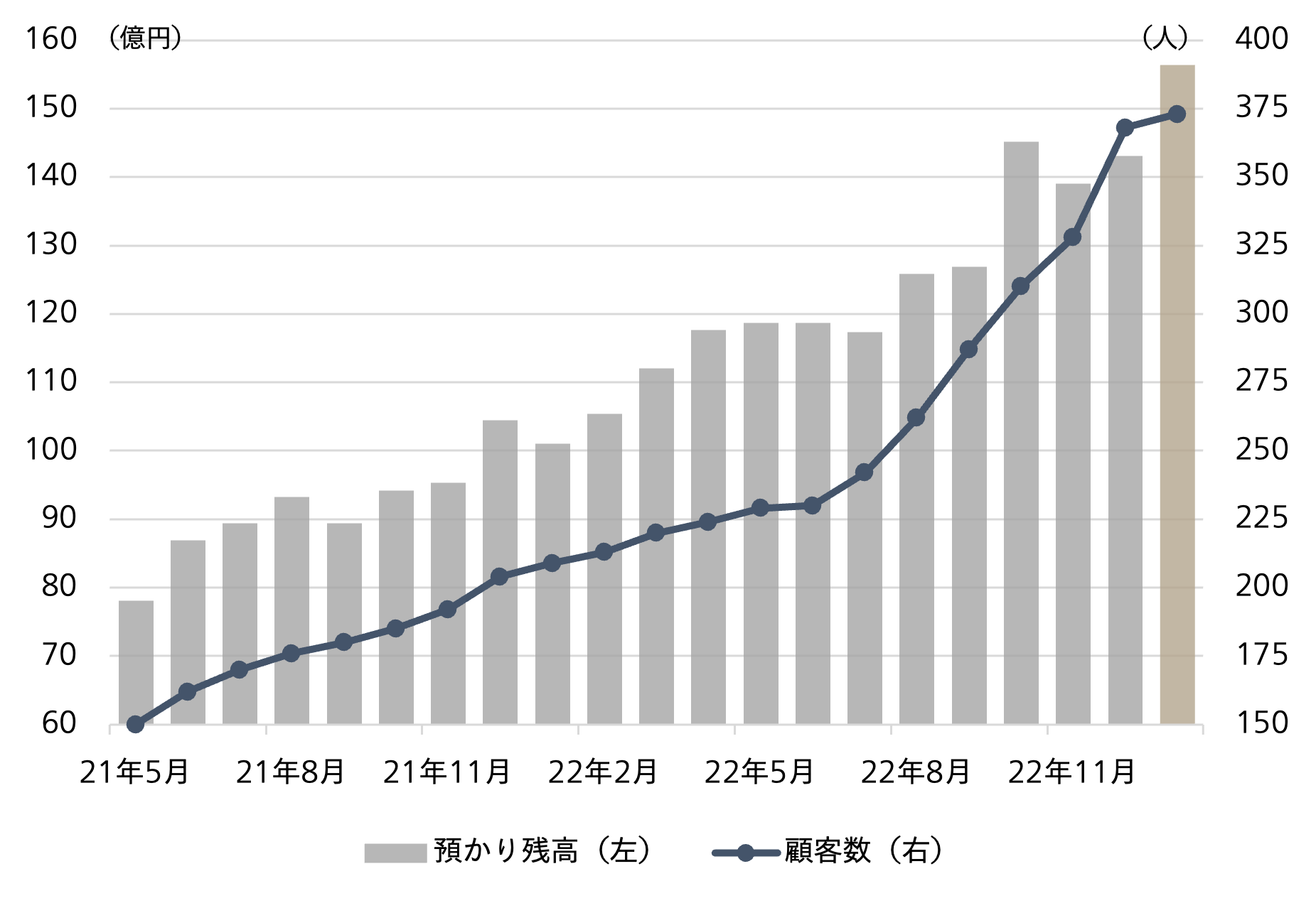 金融商品仲介業を開始以来、お客様の幅広い資産運用ニーズにお応えできるよう積極的なサービス拡充を図ってまいりましたが、お客様をはじめパートナーのみなさまなど多くの方々のご支援により8ヶ月間という短期間で当社の仲介する総預かり資産は150億円を突破いたしました。