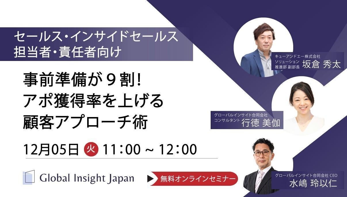 【12月5日(火)11時開催】セールス・インサイドセールス担当者・責任者向け「事前準備は9割!アポ獲得率を上げる顧客アプローチ術」をテーマに共同セミナーを開催