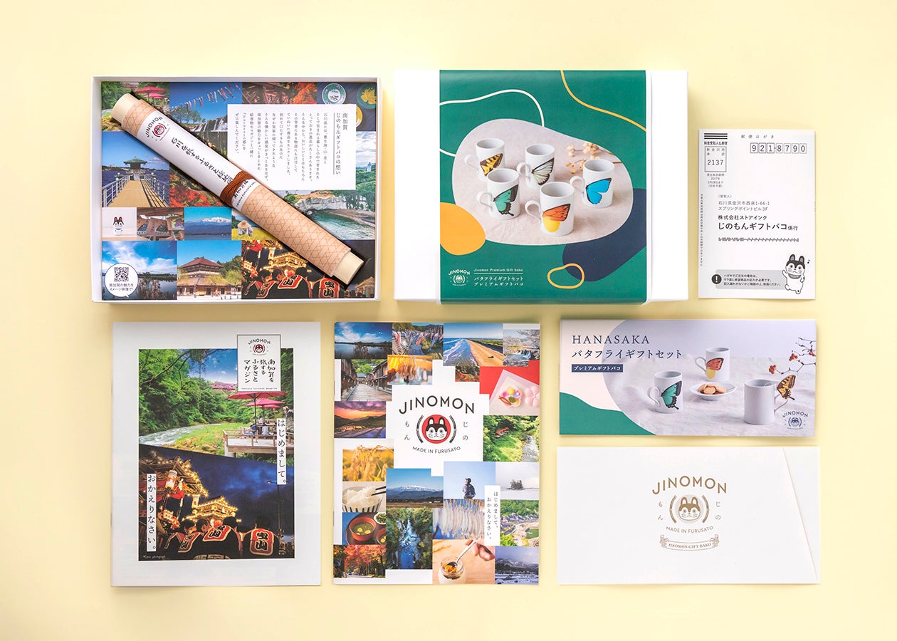 石川県のふるさと応援カタログギフトサービス「じのもんギフトバコ」を企画・販売する株式会社ストアインク(本社/金沢市)は、2025年4月25日(金)に「バタフライギフトセット(プレミアムギフトバコ)」を発売しました。