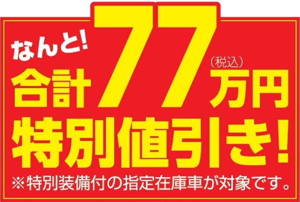 特別プラン②現行最終モデルをお得に!最大77万円の値引き特選車をご用意。現金・クレジット・残価設定型クレジット(BVC)でご検討の方におすすめ。