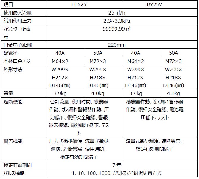 【新発売】業務用超音波式ガスメータEBY25およびBY25V発売のお知らせ
