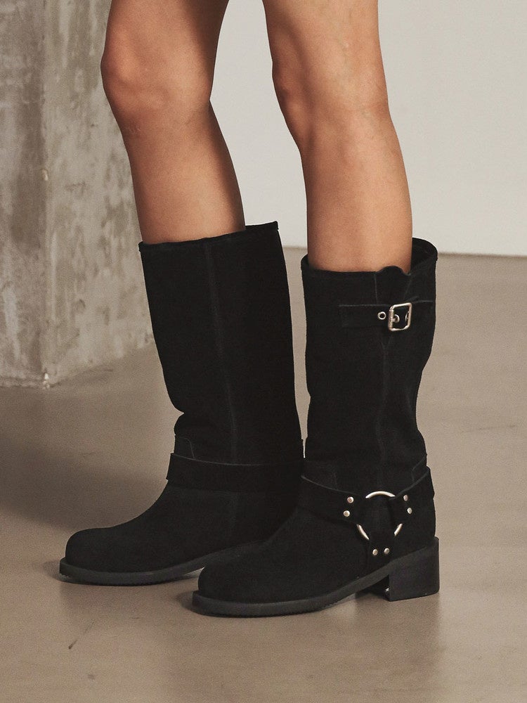 [Re Fei Knee‐High Shearing Boots 23F51 BK]
