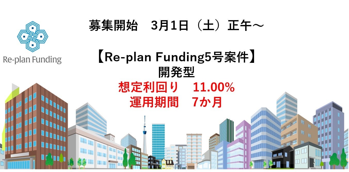 株式会社リプラン(本社:神奈川県横浜市港北区、代表取締役:三浦 洋平)は、不動産投資型クラウドファンディングサービス「Re-plan Funding」において、2025年2月19日より「キャピタルゲイン型 第5号ファンド」を掲載しましたのでお知らせいたします。