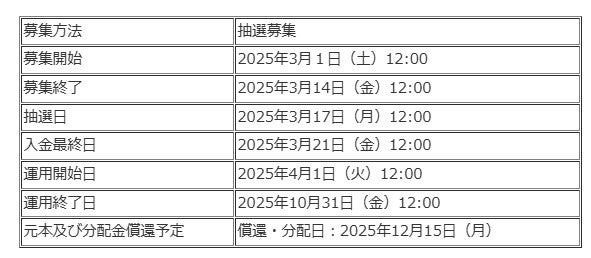 優待募集については、先着方式で全体募集金額の一部のみとなります。