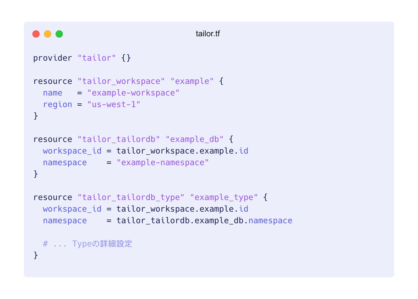 ワークスペース、TailorDBインスタンスとTypeを作成する例