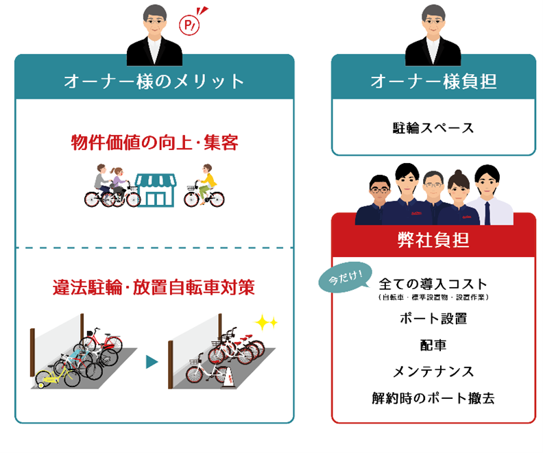 またシェアサイクルをはじめとする地球環境に優しいシェアモビリティの利用促進を図るとともに、持続可能な住みたくなるまちづくりを地域の企業様とポート・サービス連携を通し、一緒に実現していくことを目指します。