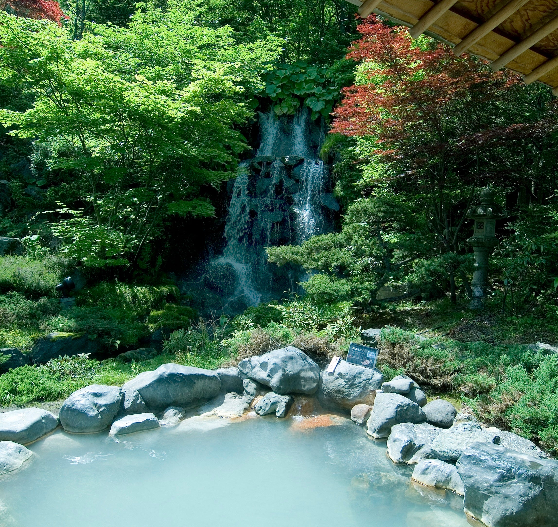 地獄谷から湧き上がる湯けむりを見ながら、硫黄の香りをかぎ、閃いたのはやはり「鬼」。サウナ室の前には赤鬼と青鬼を連想させる温冷交代浴ができる地獄の釜風呂。水風呂後の外気浴タイムは四季折々の異なる表情を見せる滝を眺めながら休んで頂きたい。今後新設される予定の深さ180㎝の木桶の樽水風呂も楽しみです。