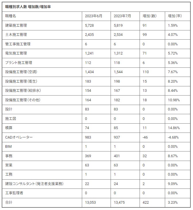 【2023年7月版】施工管理求人サイトのレポートから読み解く建設業界の求人動向