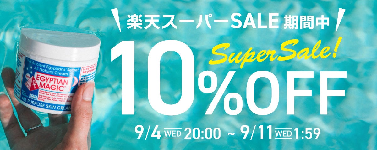 【9/4 20:00 セール開始!】高レビュー獲得、100%天然成分配合の保湿クリーム、エジプシャンマジックが楽天スーパーSALE期間中10%OFF!