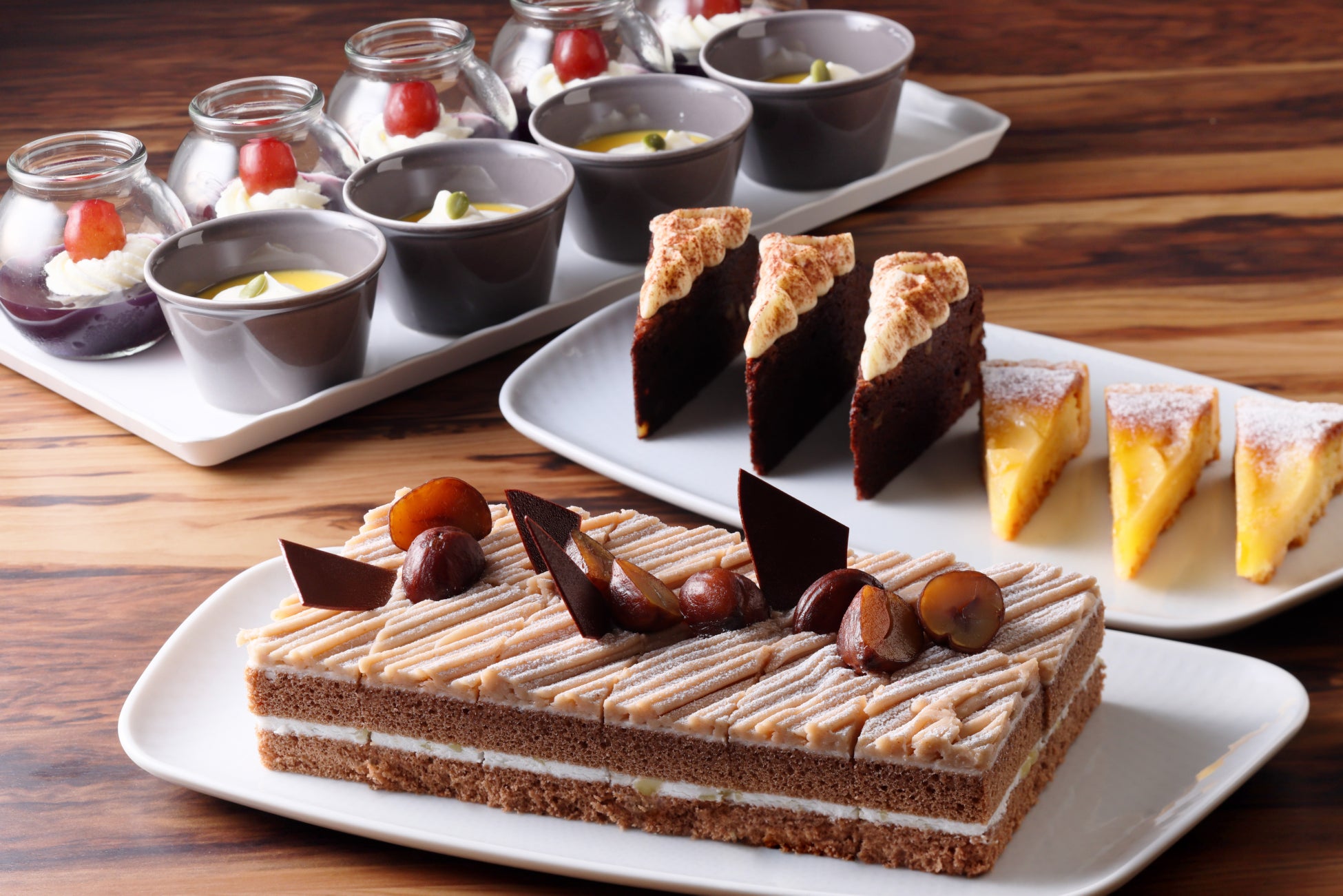 人気のデザートコーナーでは、秋を感じる『モンブラン』、『洋梨のタルト』、『ガトーショコラ』など8種類のラインナップをご用意しています。コーヒーや紅茶とともにお食事の最後までゆっくりお楽しみいただけます。