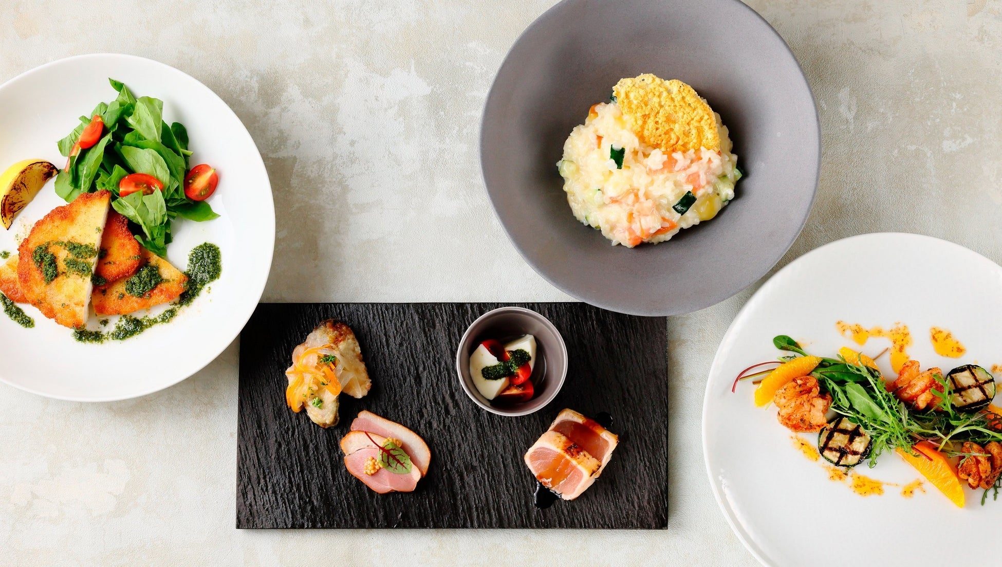平日のランチは、シェフ自慢の前菜やメインディッシュを気軽に楽しんでいただける『シェフズ ランチ セレクション』。メインディッシュは、肉料理、魚料理、パスタ、リゾットなど7種類の中からお好きなものをお選びいただけるのが魅力です。ご希望に応じて、スープ、ホテルメイドのデザートも追加注文が可能です。