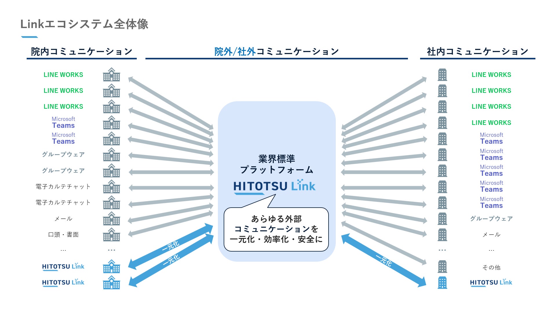 HITOTSU Linkが目指すのは、院外/社外コミュニケーションにおける業界標準プラットフォームです。