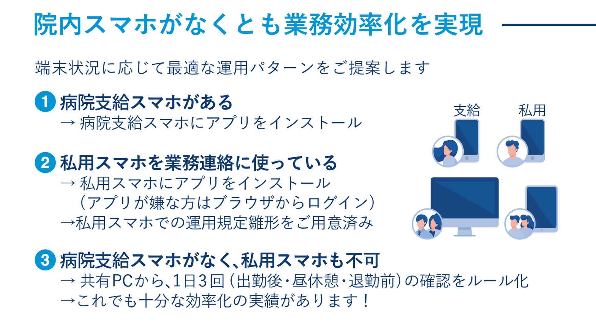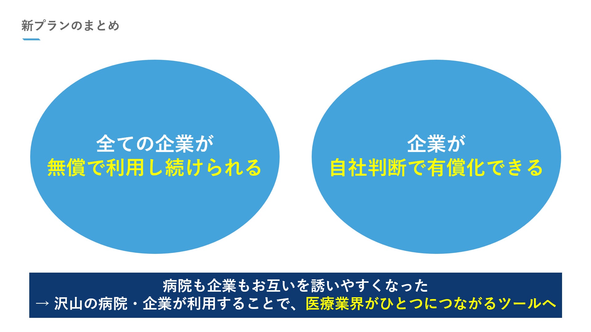 病院・企業の双方に無償・有償利用の選択肢