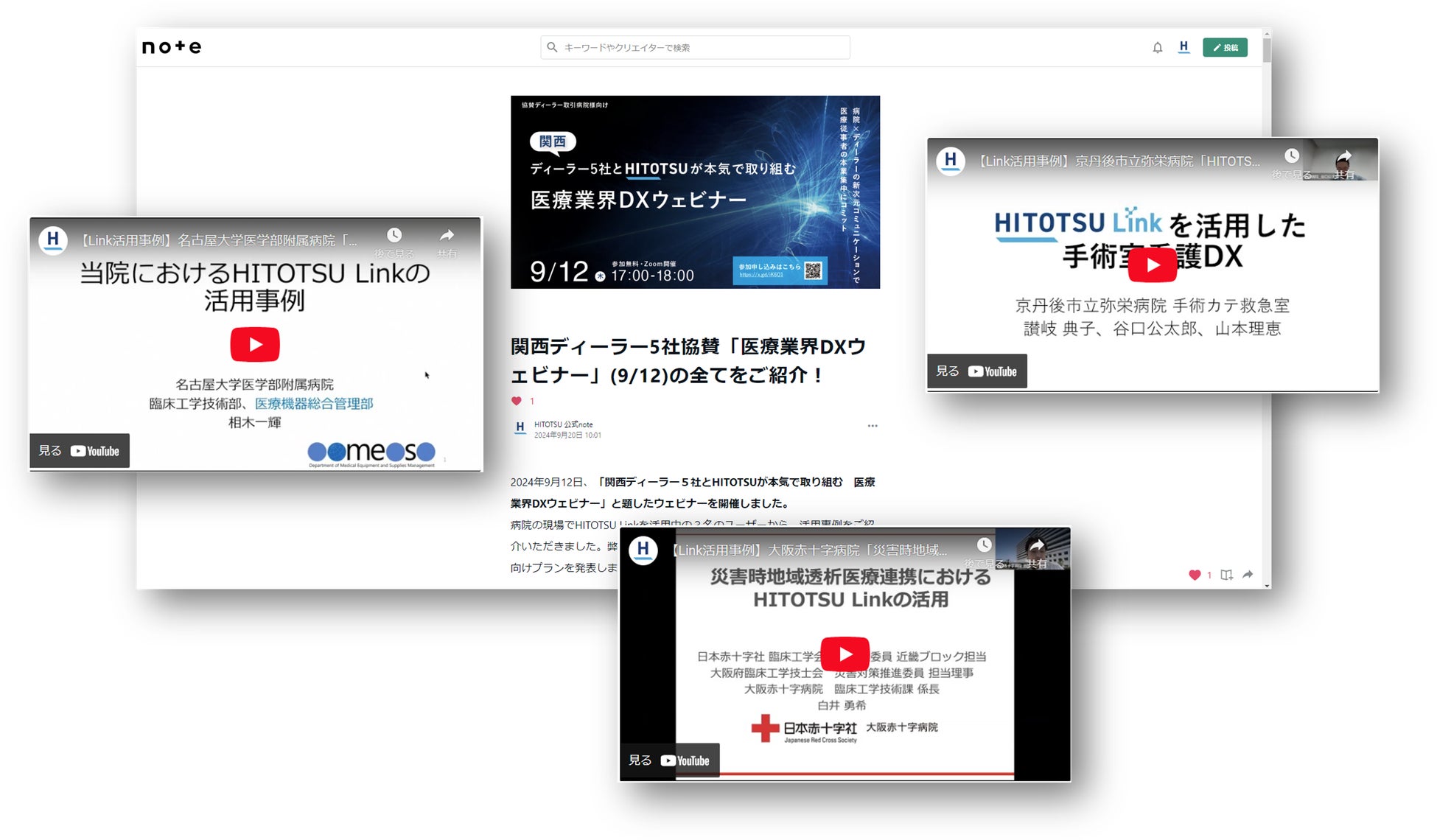9月上旬、関西の医療機器代理店5社と協賛したウェビナーを開催しました。医療機関の導入事例として、名古屋大学医学部附属病院 医療機器総合管理部、京丹後市立弥栄病院 手術カテ救急室、大阪府臨床工学技士会 災害対策推進委員・担当理事の方より、様々な活用例と成果をご報告いただきました。また、協賛5社(株式会社増田医科器械様、石黒メディカルシステム株式会社様、エア・ウォーター・リンク株式会社様、株式会社ダテ・メディカルサービス様、株式会社石坪様)からもHITOTSU Linkの有用性や展望についてコメントをいただきました。