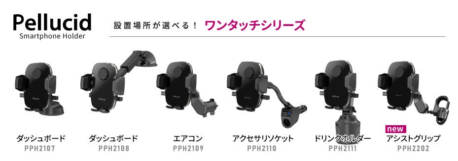 ペルシード スマホホルダー人気のワンタッチ開閉シリーズに、働く車に最適なアシストグリップ取付け(PPH2202)が新発売。