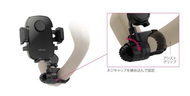 ペルシード ワンタッチスマホホルダー アシストグリップ取付け【Pellucid Phone Holder 品番:PPH2202】