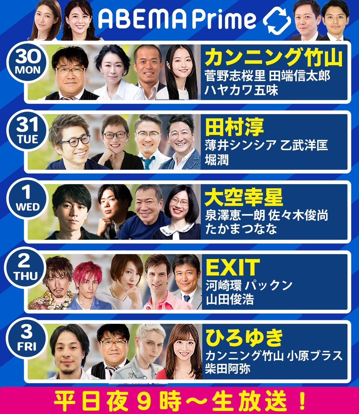 ABEMAが手掛ける報道リアリティーショー番組「ABEMA Prime」(通称「アベプラ」)は、“みんなでしゃべるとニュースはおもしろい” をキャッチコピーに、平日夜に生放送されている人気番組です。