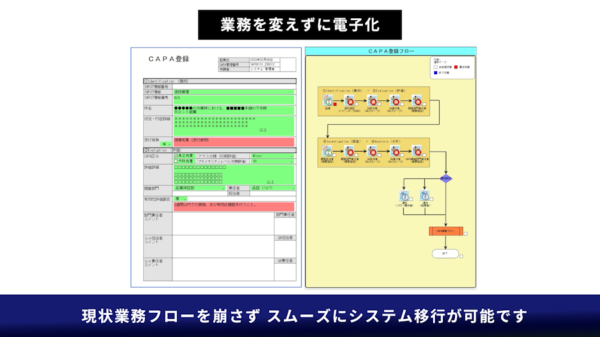 データインテグリティを適正に確保するために欠かせないCSV をはじめとした21 CFR Part 11に対応可能で、既存の業務の流れを継承しながら電子化することができます。