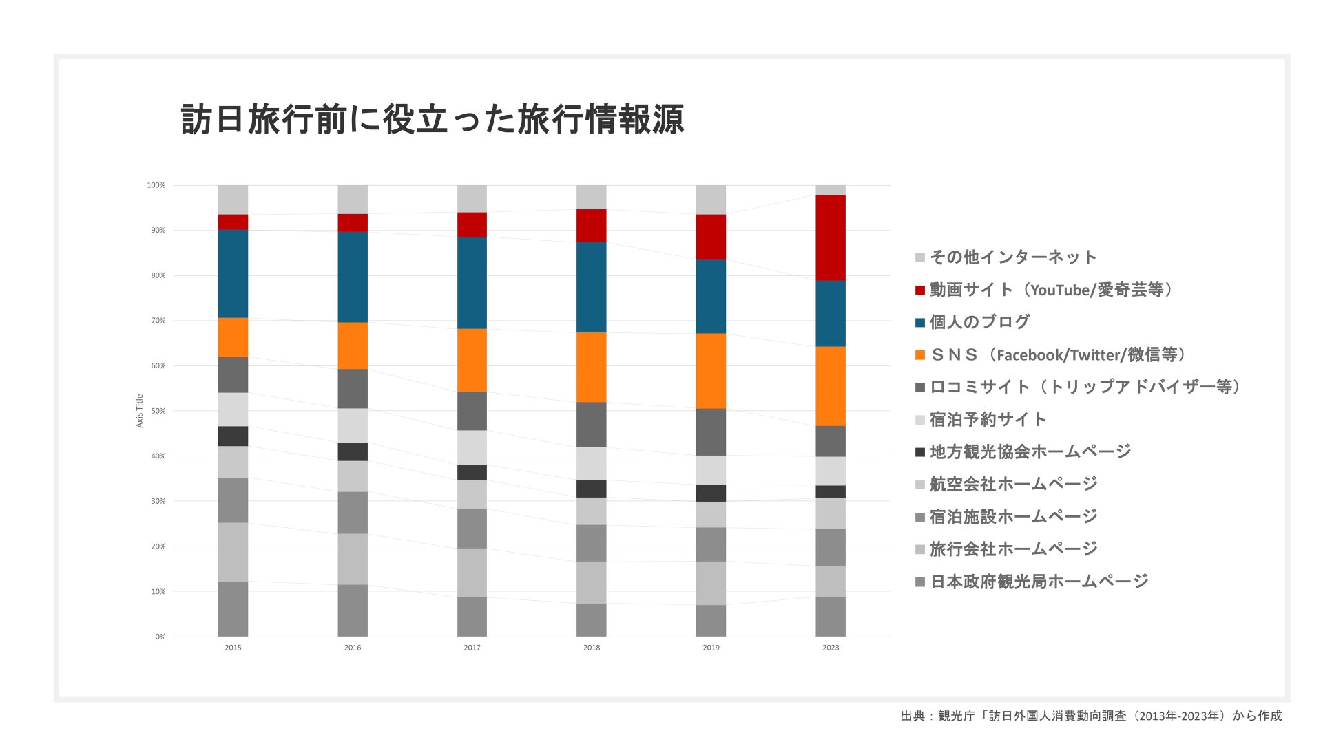 •旅行先や観光スポットの情報収集では、SNSや動画メディアが主流となっています。