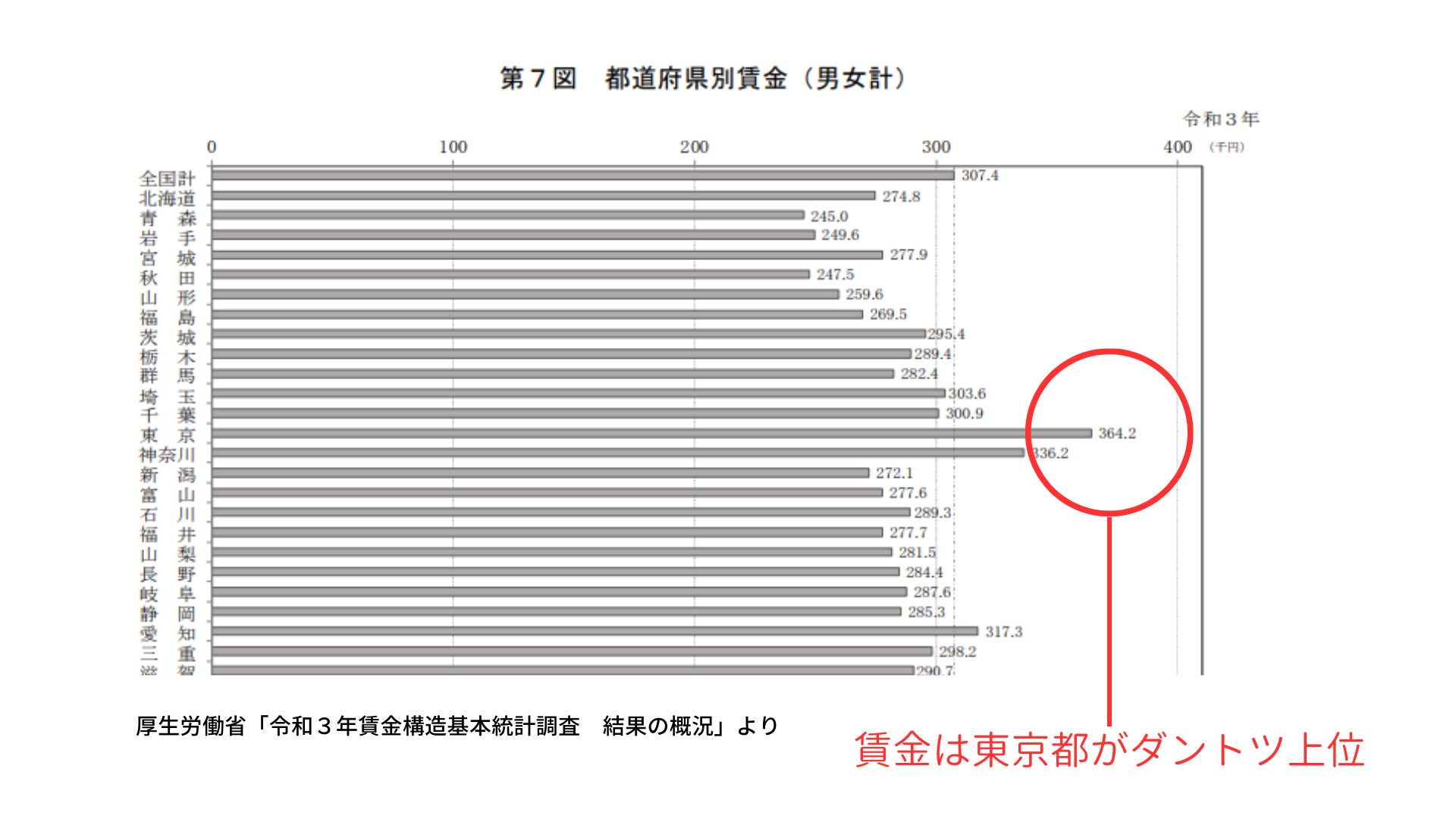上記グラフの通り、地方と都心では賃金格差があり、少子高齢化も進んでいます。婚活イベントなども、都市部に比べ頻度が限定的であり、地方では女性が希望する条件に見合う男性と出会う機会が限られ、婚活の行動範囲やチャンスに大きな差があると言えます。そんな背景の中で、郊外や地方から首都圏で男性との出会いの機会を見つけるために、地方から首都圏に上京し、婚活を行う女性も増えています。