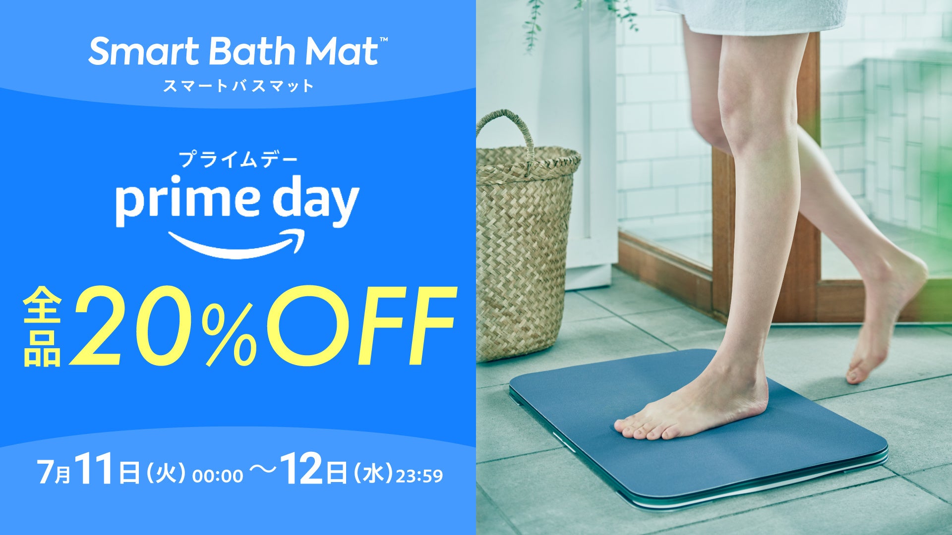 この新機能搭載を記念し、より多くの方に「スマートバスマット」での健康管理を体験していただくため、当社はAmazonが開催する「Amazonプライムデー」に参加し、「スマートバスマット」を全品20%OFFで販売いたします。お得な価格でお買い求めいただけるチャンスを是非お見逃しなく、健康な生活習慣を身につけましょう。