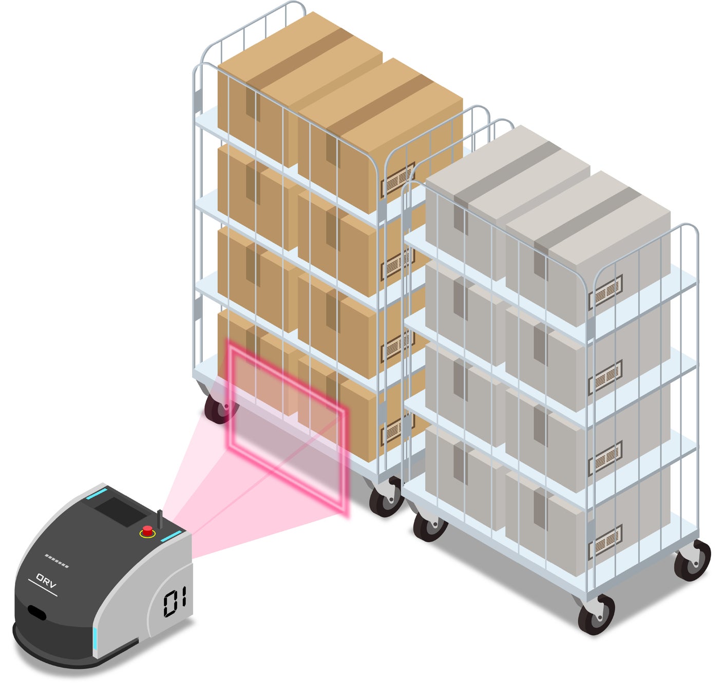 「ORV」は、センサーで周囲の環境を把握し周辺地図の作成と自己位置推定を行うSLAM(Simultaneous Localization and Mapping)技術を活用し、AI(人工知能)を搭載した自律移動ロボットです。カゴ車を自動認識して取りに行き、カゴ車の片側をつかみ上げて目的地まで障害物を避けながら搬送します。けん引ではないためカゴ車と一体になりその場で旋回するなど小回りが利き、バック走行が可能なため狭い空間でも隙間なくカゴ車を整列配置させることができます。物流施設において、モノを単純に動かす・運ぶという作業の自動化を実現します。