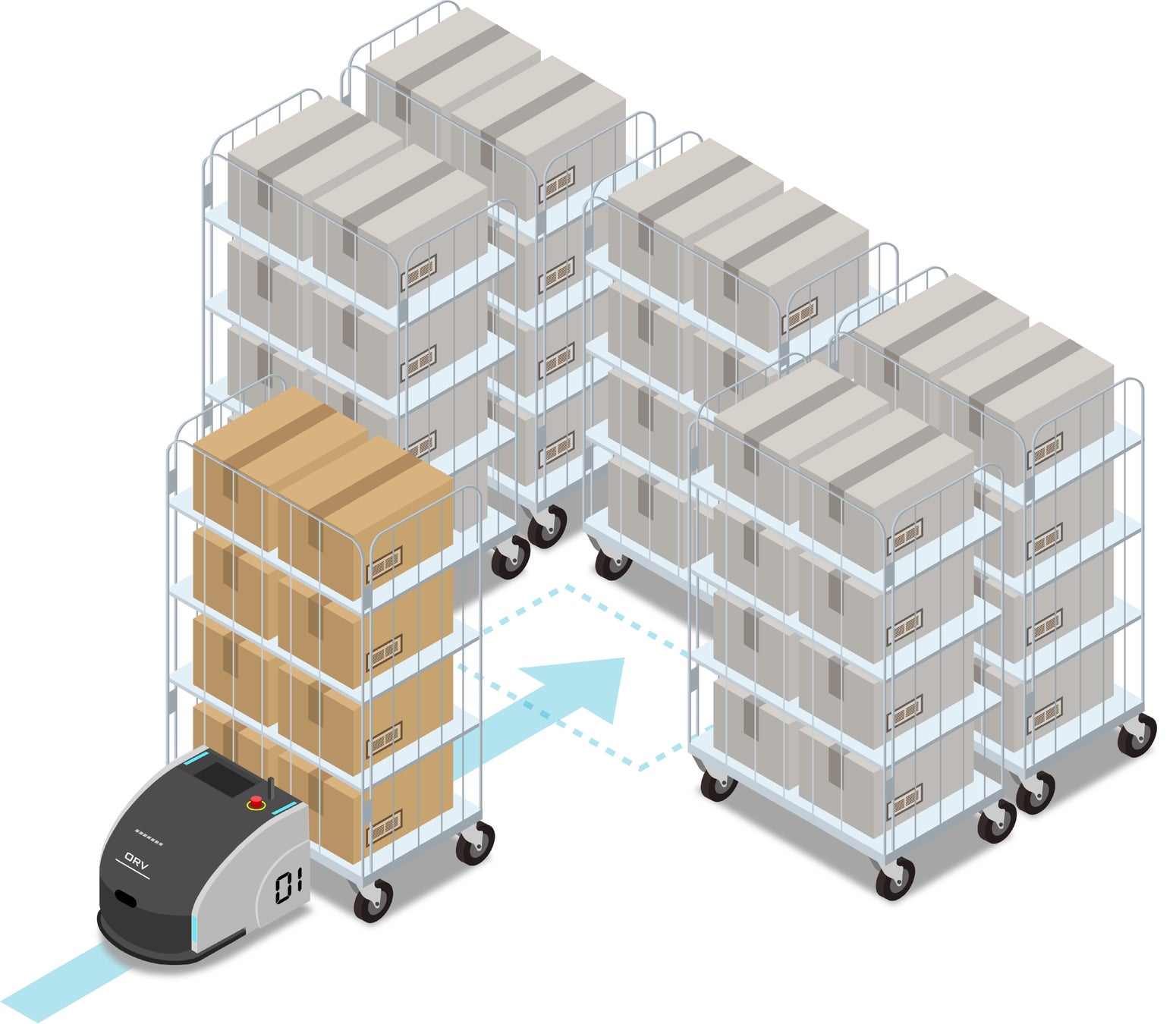 物流施設でカゴ車の工程間搬送や整列配置の自動化を実現する自律移動ロボット「ORV(オーアールブイ)」を発売