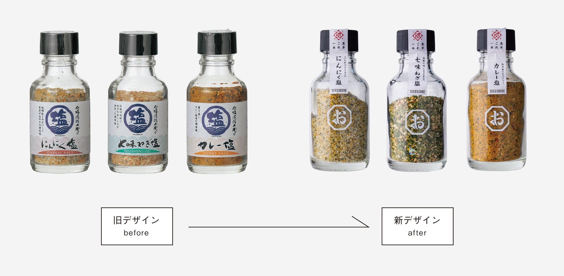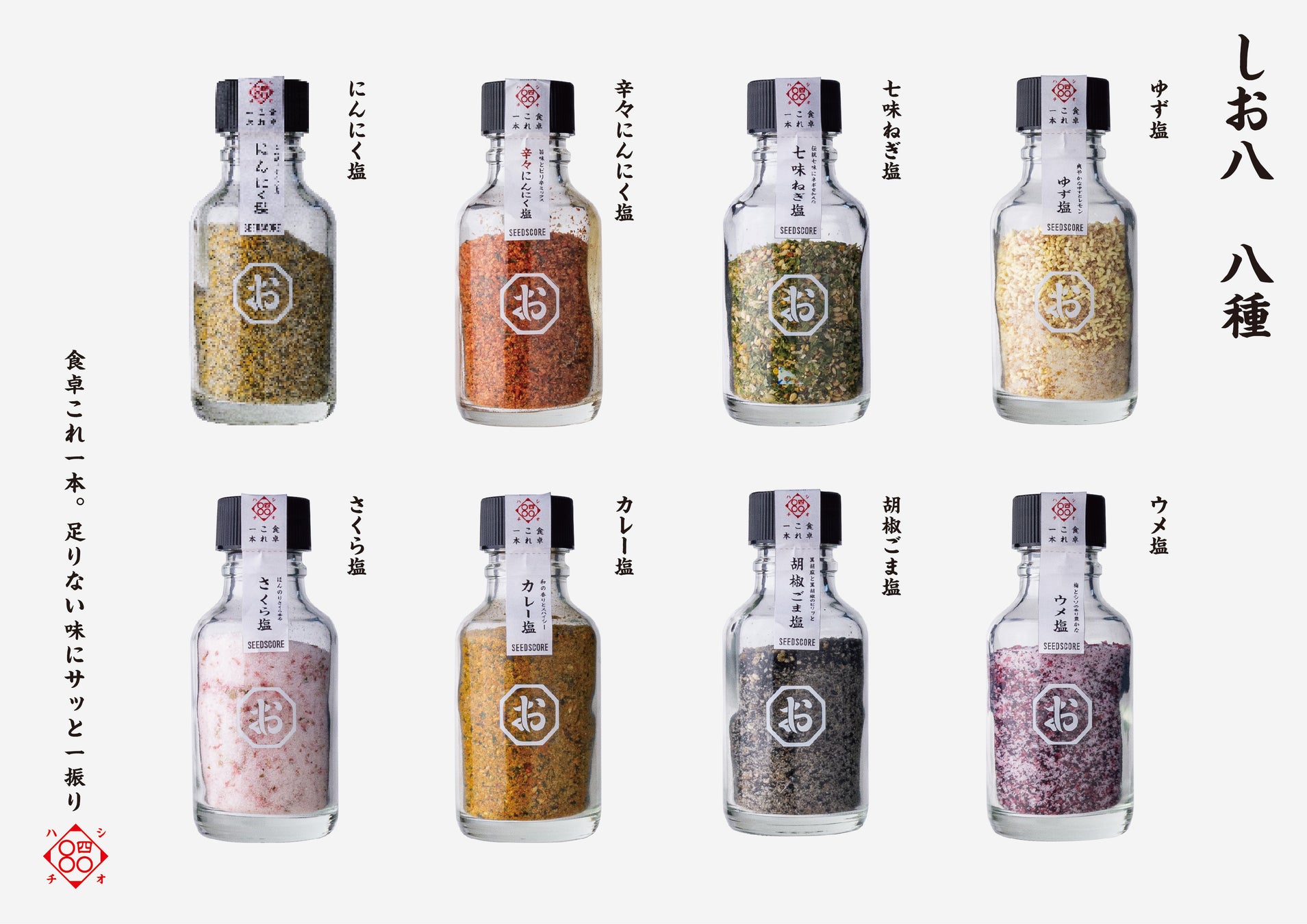 「しお八」は、食卓の日常使いの定番調味塩として年間を通じて料理の味足しや味変えにお使いいただき発売から25年、販売数量は累計100万本(※1)を突破しました。今回のリニューアルでも、引き続き食卓の定番調味塩として品質・味の向上と楽しいラインナップを追求します。また、日常的に手に取りたくなる調味塩であることと、日常に違和感なく溶け込み料理の助っ人としての役割を目指し、シンプルでありながら調味塩らしい品質感と現代感のあるパッケージデザインに変更しました。