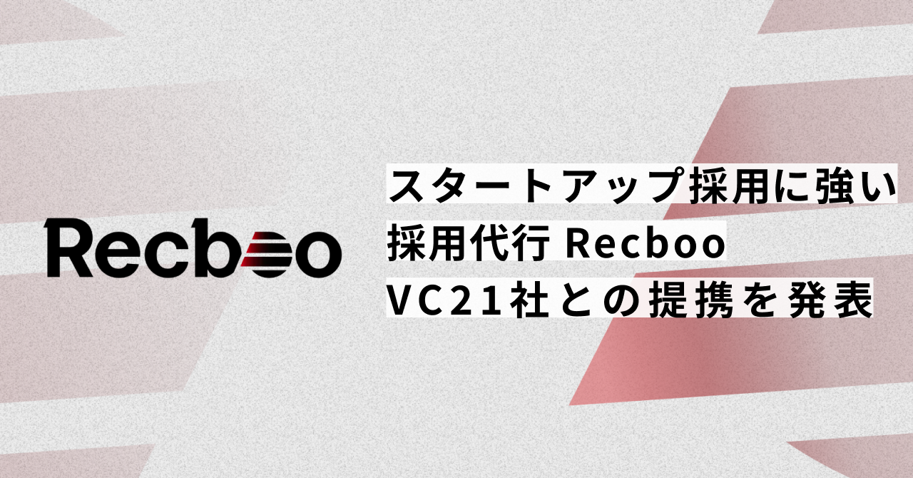 【成長企業の中途採用支援サービスRecboo(リクブー)】ベンチャーキャピタル11社と提携し投資先スタートアップ向けに特別プランを提供開始