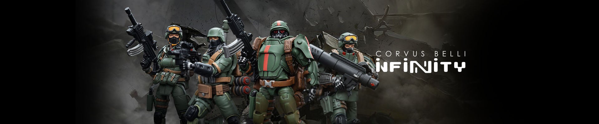 Corvus Belli社は2001年にスペインのカンガスにて設立され、ミニチュアゲームおよびそれに付随するミニチュアのデザインと製造に取り組んでいます。主要なクリエイターは、プレイヤーでありながら開発者でもある熱心なファンの集まりであり、彼らの主要な製品「Infinity」は、プレイヤーの期待を満たし、最高のゲーム体験を提供することが出来る、サイエンスフィクションテーマのミニチュアゲームです。