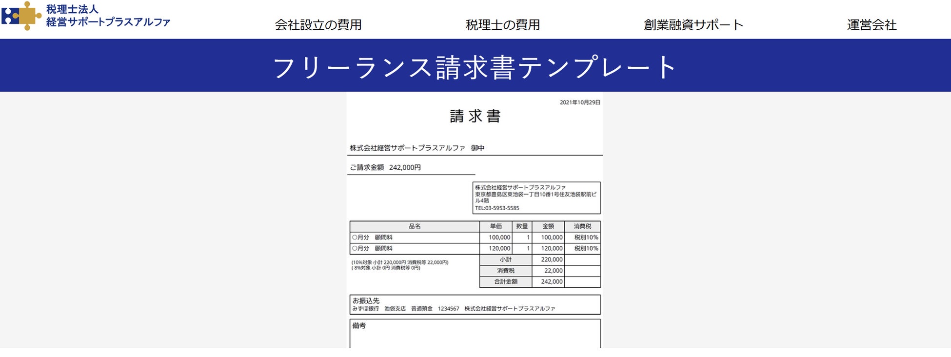 「フリーランス請求書テンプレート」:https://keiei-support-plus-a.com/seikyuu-pippa/free-lance-seikyuusho/