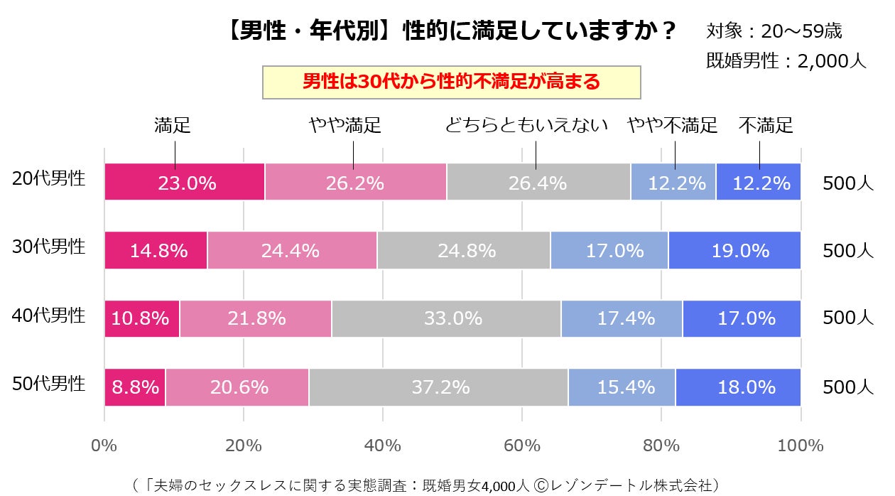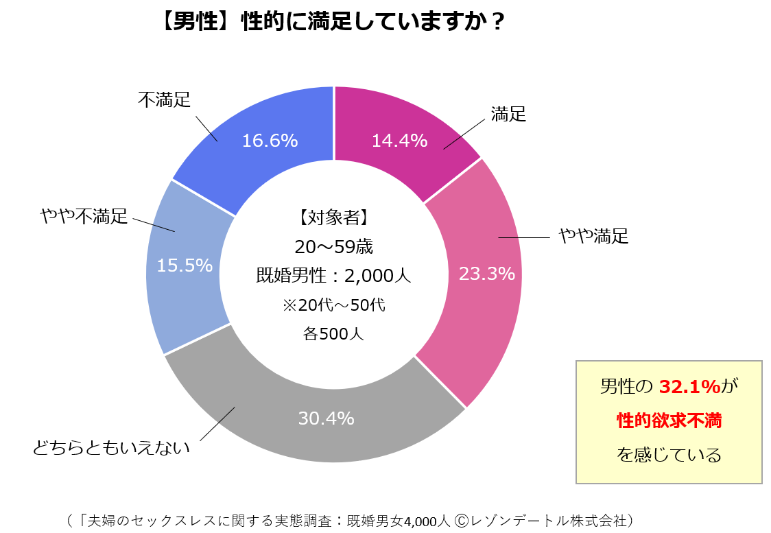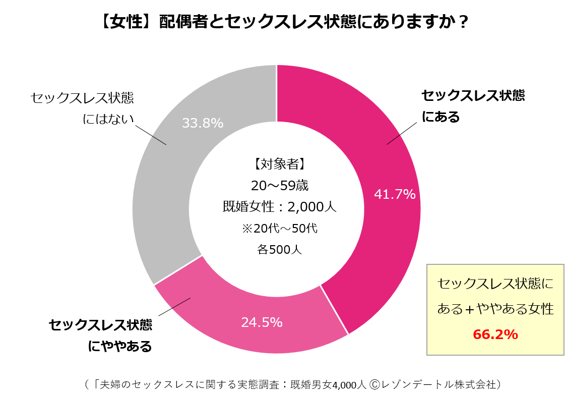 日本の社会問題ともいえる夫婦間のセックスレス。その深刻な実態が明らかに。20~50代既婚男女4,000人と対象とした過去最大・最新のアンケート結果。「セックスレスでも夫婦仲は良い」という意外な結果も。