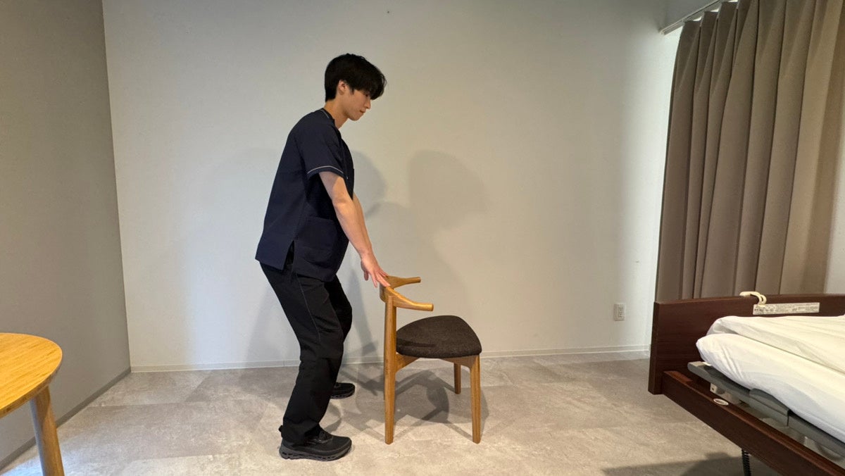 [メニュー] 膝を曲げた状態で3秒キープ 左右3回ずつ 椅子を使ったスクワット:10回×3セット