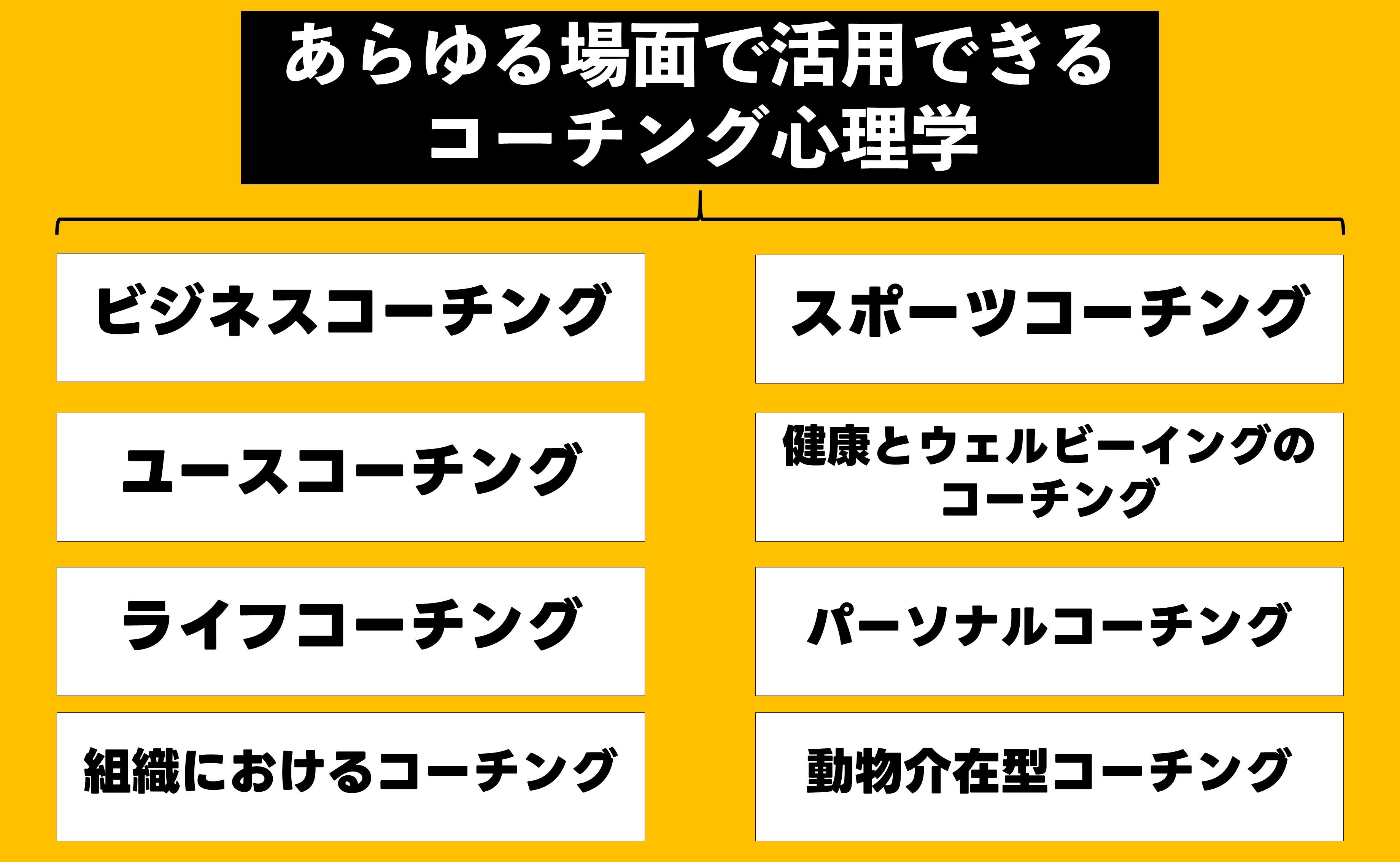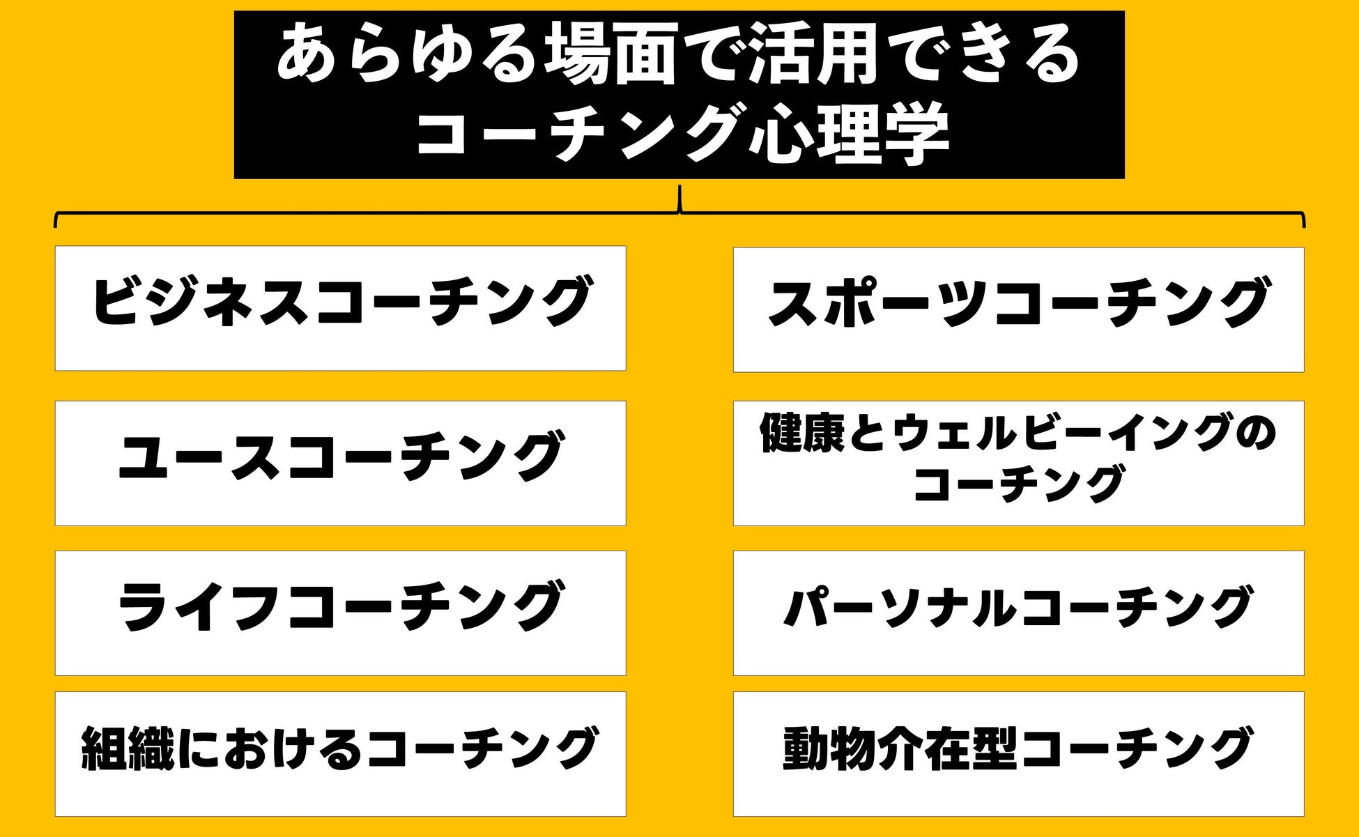 いる。また,コーチング心理学の応用として,コーチング心理学の専門分野や支援方法,組織での活動,