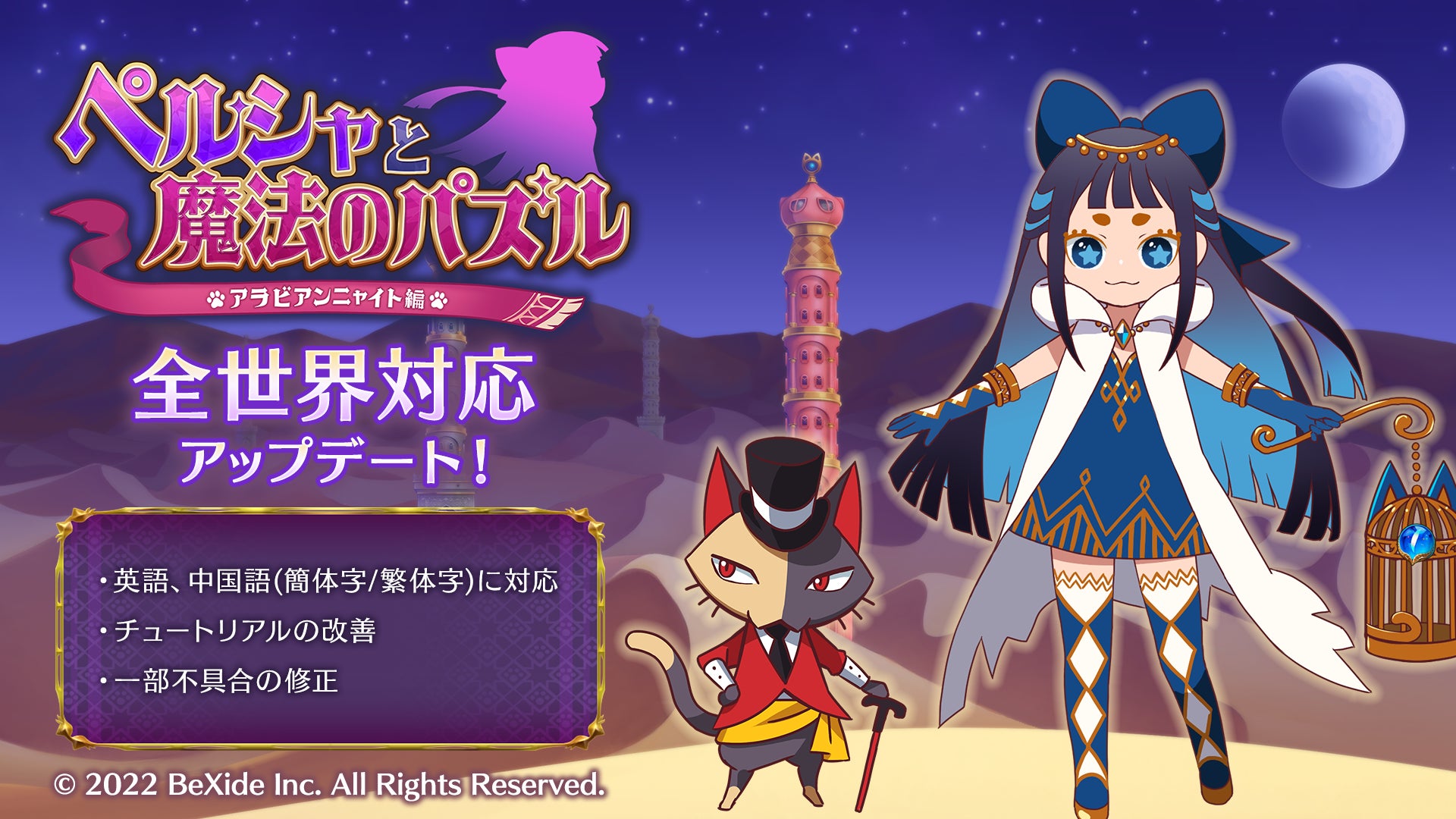 株式会社ビサイド(本社:東京都立川市、代表取締役社長:南治 一徳)は、『ペルシャと魔法のパズル 〜アラビアンニャイト編〜』の、アップデートVer.1.1.0の実施したことをお知らせ致します。