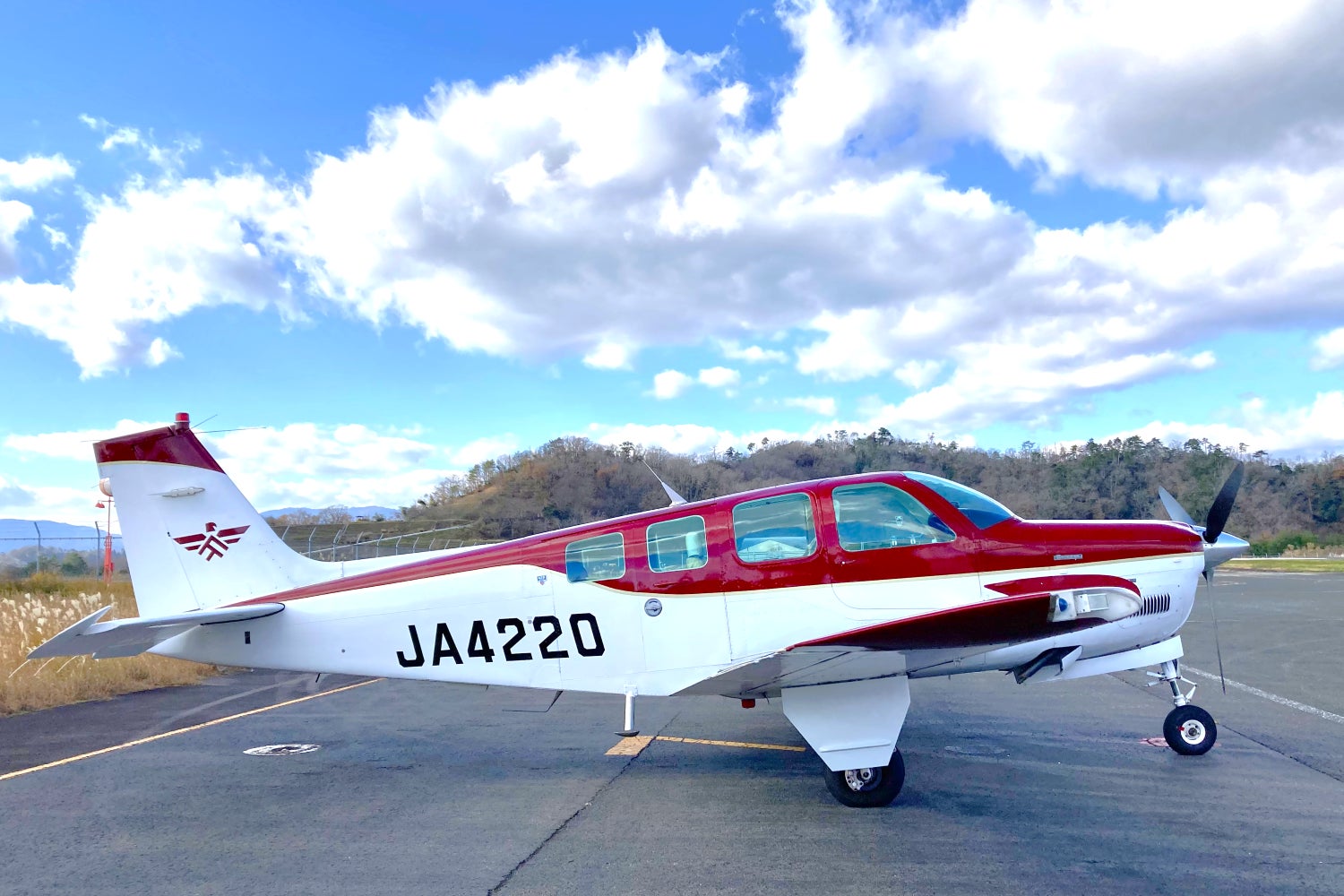 ※当社所有の飛行機「Bonanza」は、かつて航空大学校で訓練機として使用されていたもの。
