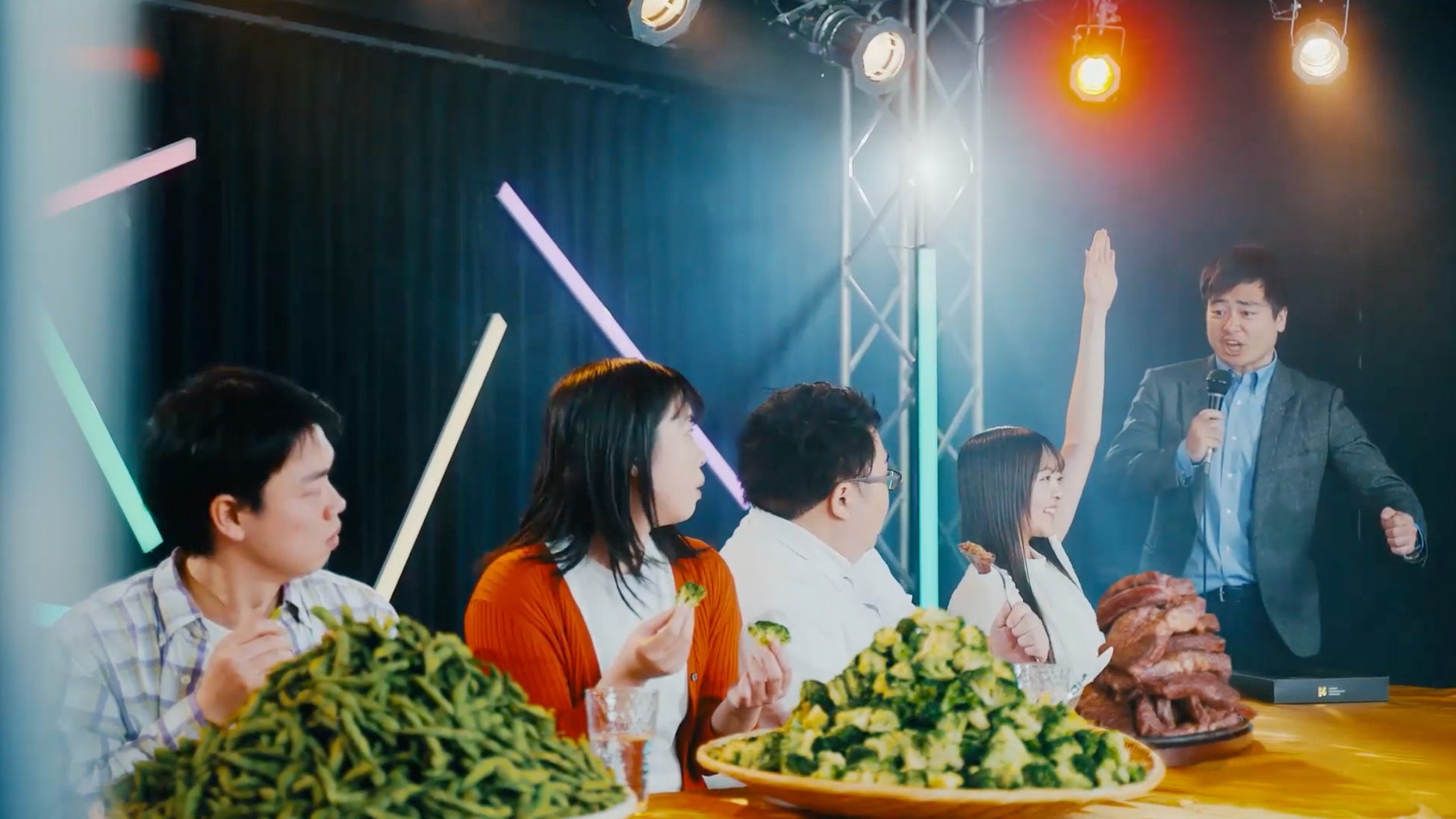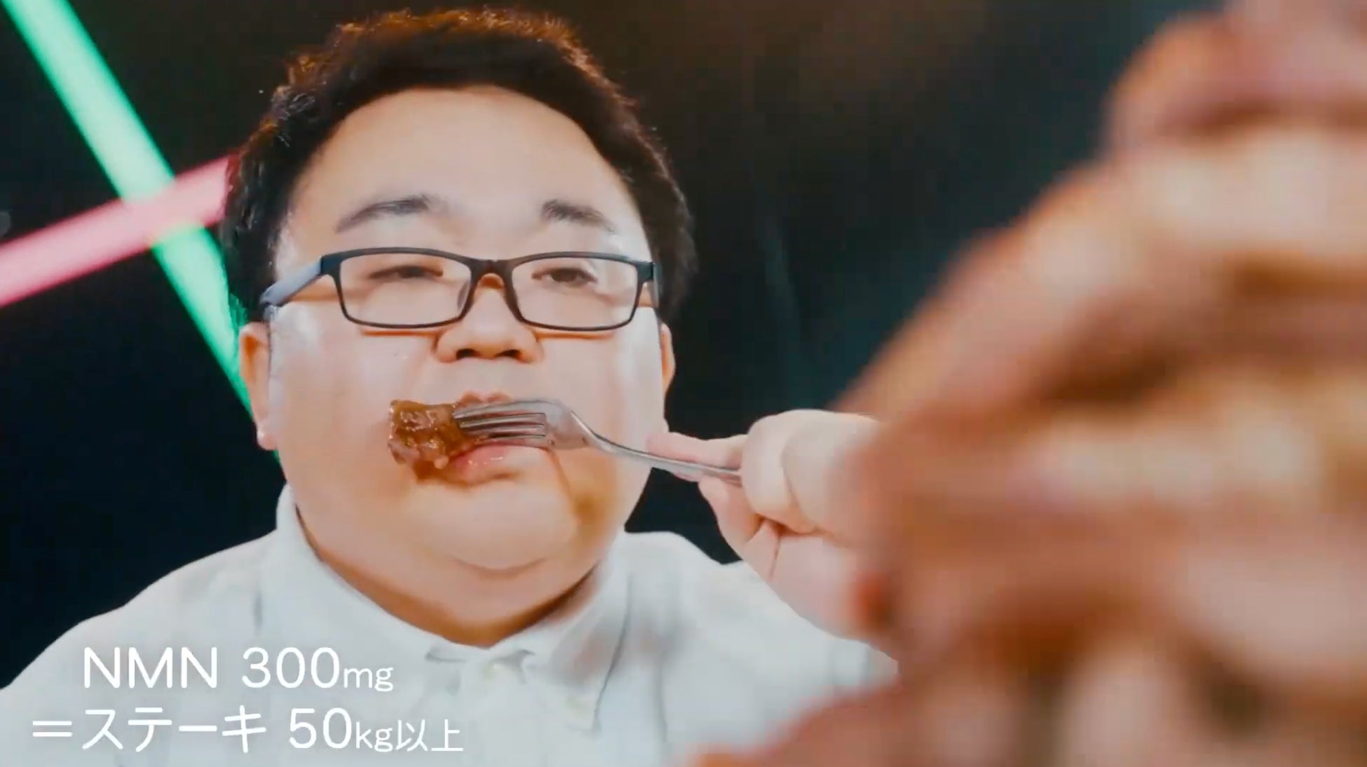本CMでは、NMN300mgを摂取するために必要な食材量(ブロッコリー、枝豆、ステーキなど)を具体的に示し、「P3」であれば1日1包9粒のサプリメントで簡単に補えることをユーモアを交えながら伝えます。